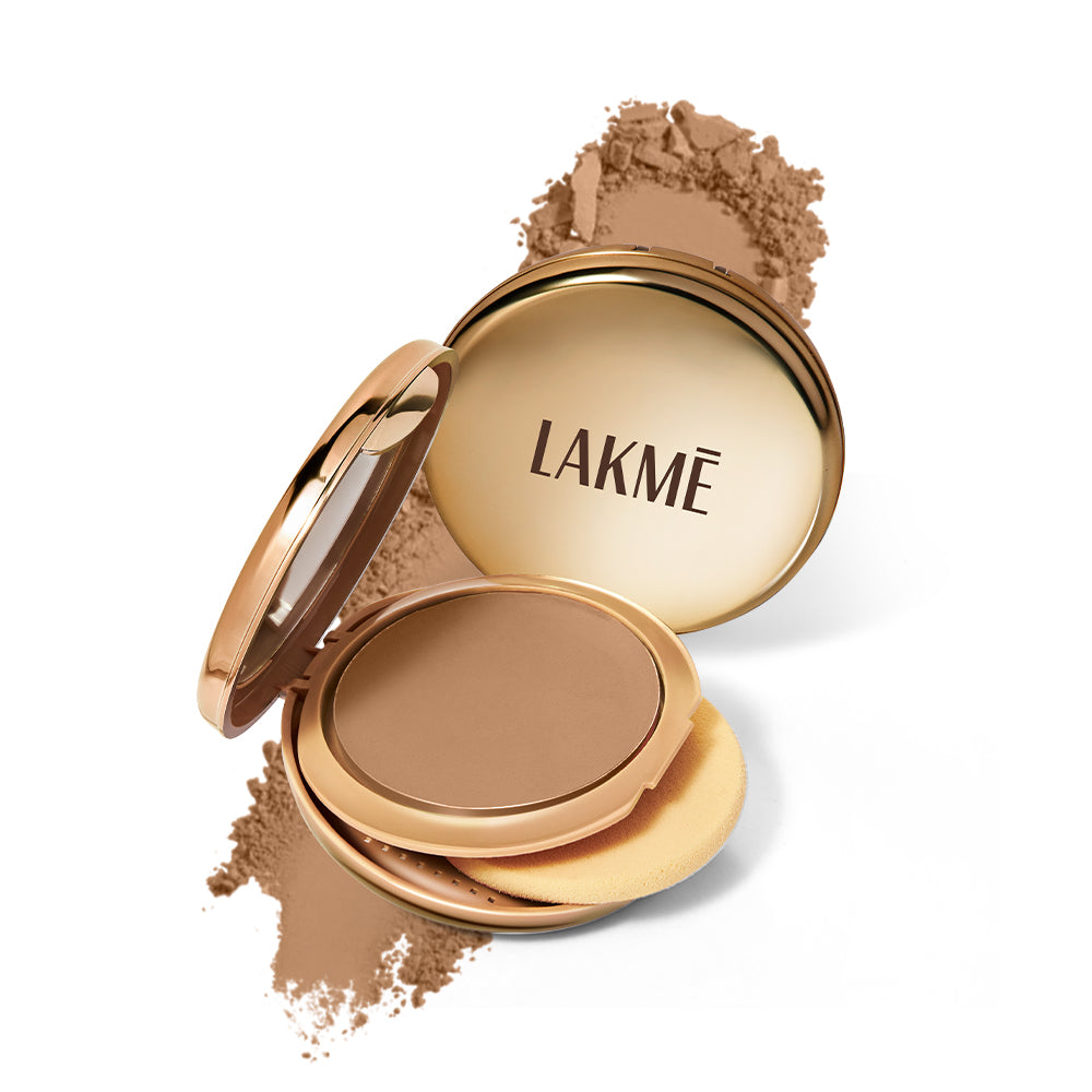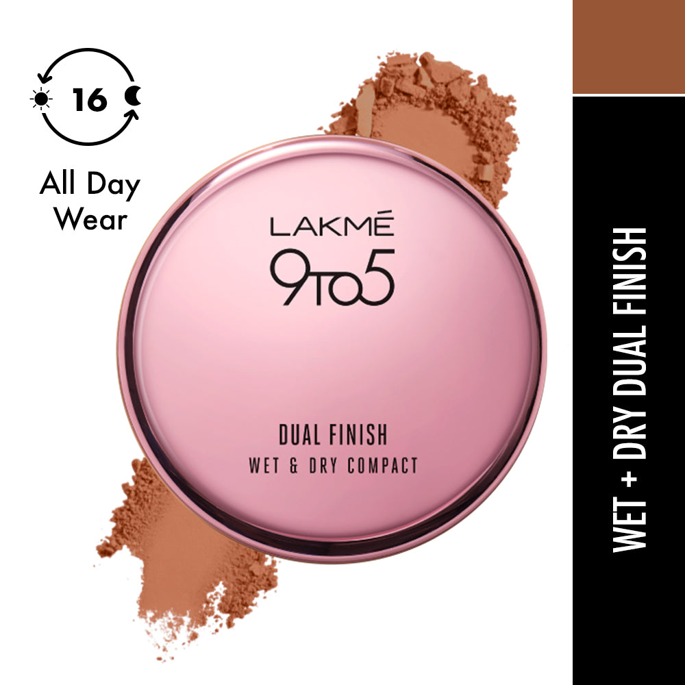 "One compact. Two Flaw-less Finishes. Move over regular compact - it's time for the new Lakmé 9to5 Dual-finish Compact. So innovative, you can use it as a compact when you want or a foundation when you need. Its unique formula can transform from an everyday compact to a full-coverage foundation in just a swipe. Damp the applicator with a water spray. Dab it into the compact and watch it transform magically into a foundation. It’s long-lasting, has a non-cakey finish, and feels ultra-lightweight on your skin. The powdery dry compact gives a fresh & natural everyday coverage. While the foundation finish is perfect for a glam day out. Available in 8 shades, the Lakmé 9to5 Dual-finish Compact is also easy to use and convenient to carry. The pocket-friendly pack fits effortlessly into your purse and comes with an easy applicator, making it convenient to get flawless skin on the go! It’s easy-to-blend formula sits comfortably on your skin. While its innovative dual technology makes it the perfect new addition to your makeup kit. From a long day at work to a night on the town, the new Lakmé 9to5 Dual-finish compact transforms with your mood and gives you a flawless finish, every single time."