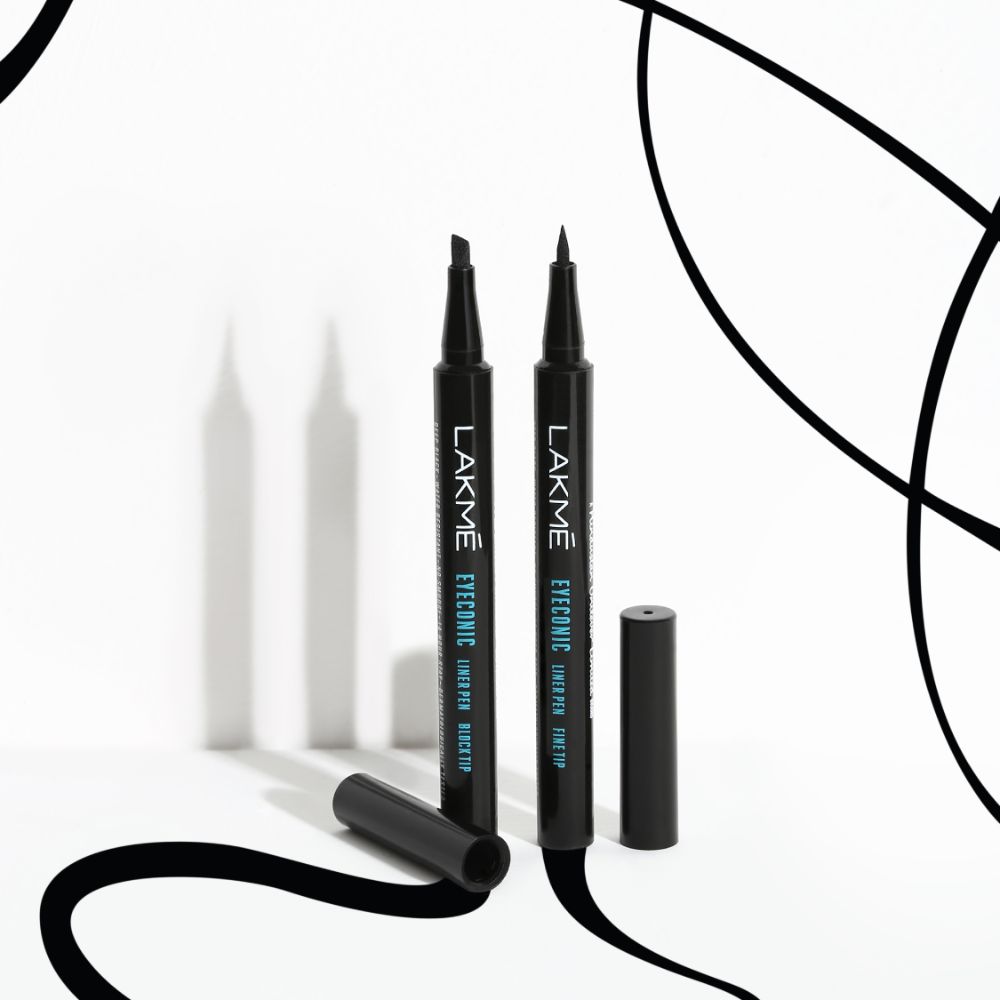 Lakmé introduces the newest trend that allows you to style your eyes in more than one way. Introducing which comes with two interesting nibs: Fine tip and Block Tip.Get precision lined eyes and an intense black finish with the new Lakmé Eyeconic Liner Pen – Fine Tip, which is perfect for an everyday look. On days when you want to look dramatic, get an intense, bold black finish with the Lakmé Eyeconic Liner Pen - Block Tip. Lakmé Eyeconic Liner pen allows you to draw long lasting, waterproof strokes across your eyelid that stay for 14 hours.