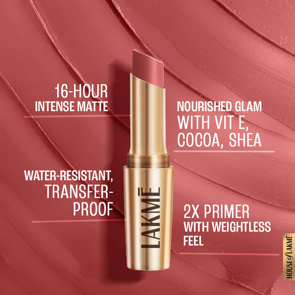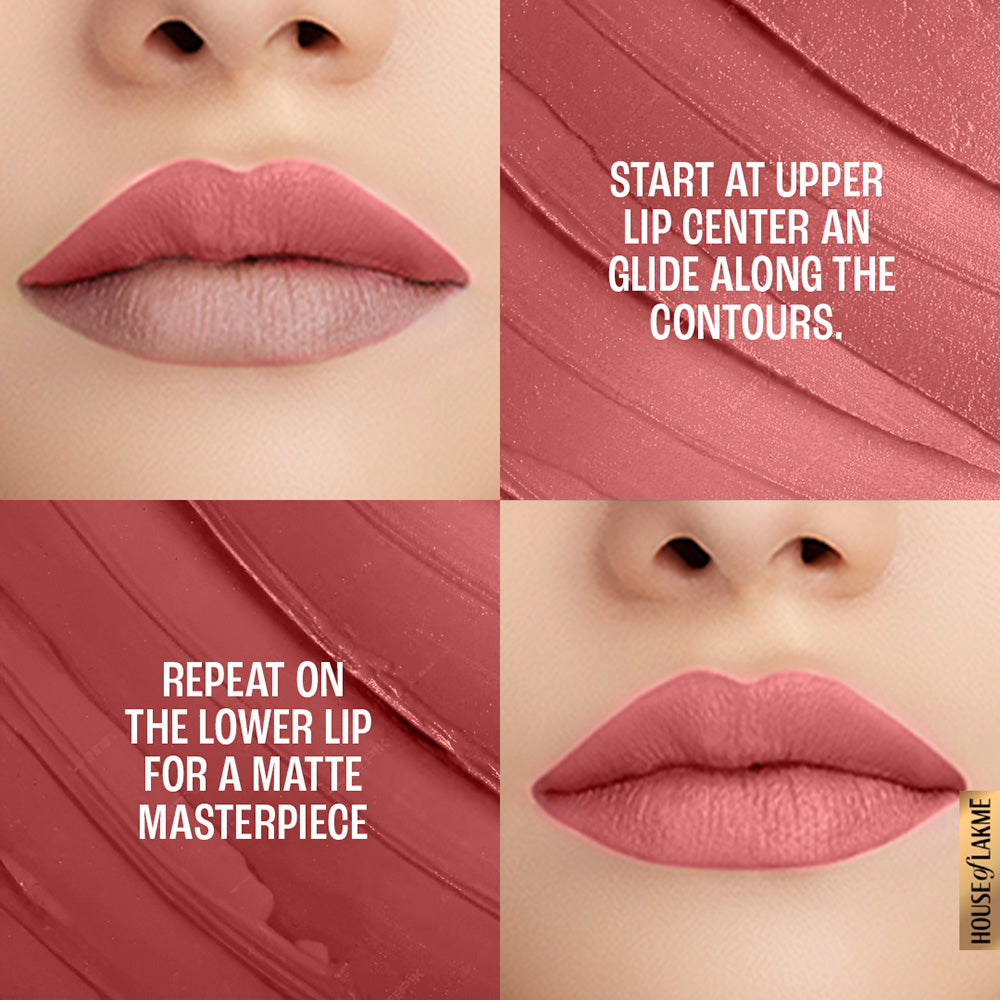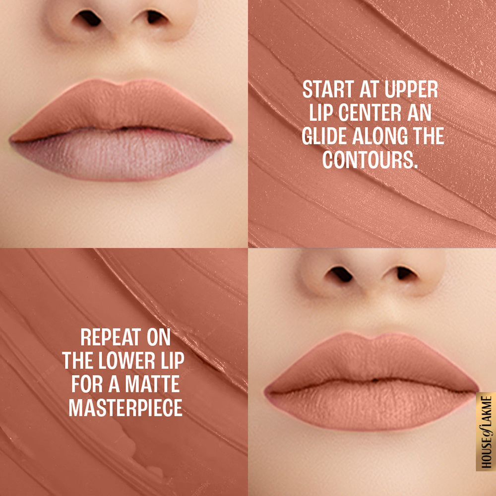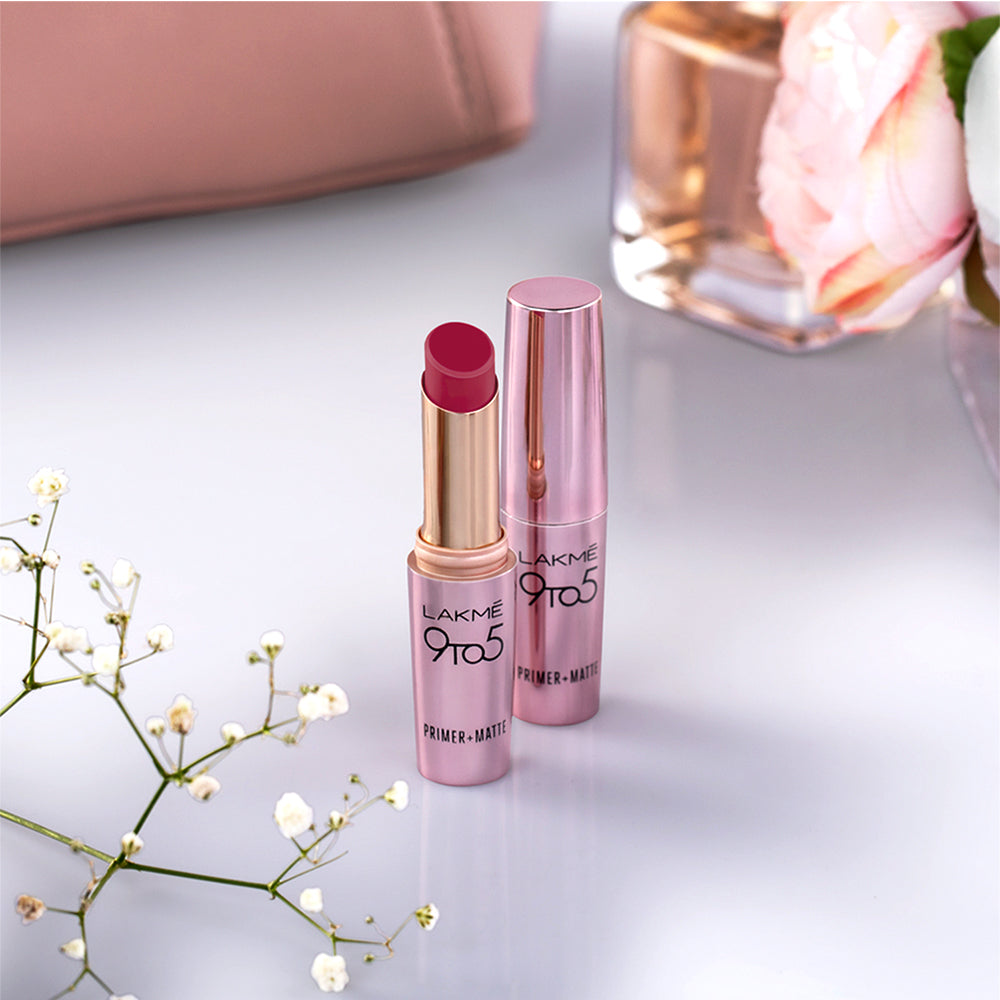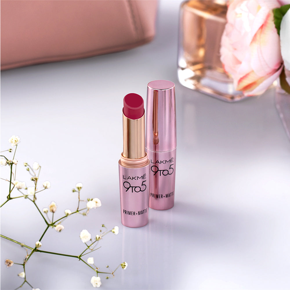 An unstoppable matte, for an unstoppable you! Introducing Lakmé 9to5 Primer+Matte Lipstick, with 2x built-in primer that gives your lips a long-lasting, smooth matte finish. It glides onto your lips smoothly and feels extremely comfortable and lightweight. The built-in primer ensures that the color settles onto your lips evenly. With 14-hour long stay power, it is your perfect companion in conquering the day! Now say goodbye to touch-ups through the day, as this lipstick was made for the woman who doesn’t stop! Available in 20 intensely rich, matte shades, your search for the perfect color ends with Lakmé 9to5 Primer+Matte Lipstick. Choose from a wide range of nudes, pinks, reds, browns, and plums that deliver rich color without drying out your lips. It glides on smoothly for a flawless matte finish and a vibrant color payoff. Pair it with Lakmé 9to5 Primer+Matte Perfect Cover Foundation, Lakme 9TO5 Eye Color Quartet Eye Shadow and Lakmé Eyeconic Kajal to flaunt your fabulous looks round the clock! Look good and feel unstoppable as you put on your makeup. How to apply: Start applying the lipstick at the centre of your upper lip and follow the contours of the lips. Glide it across the bottom lip for a smooth finish.