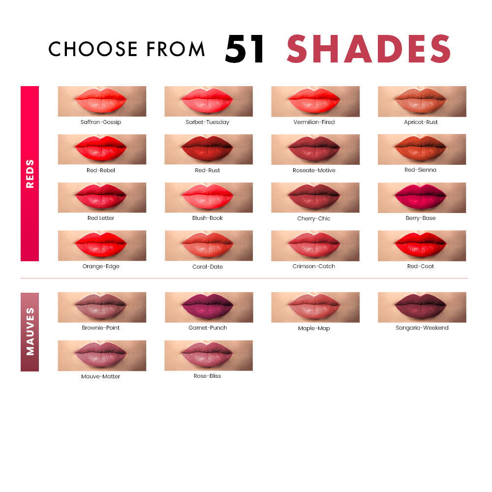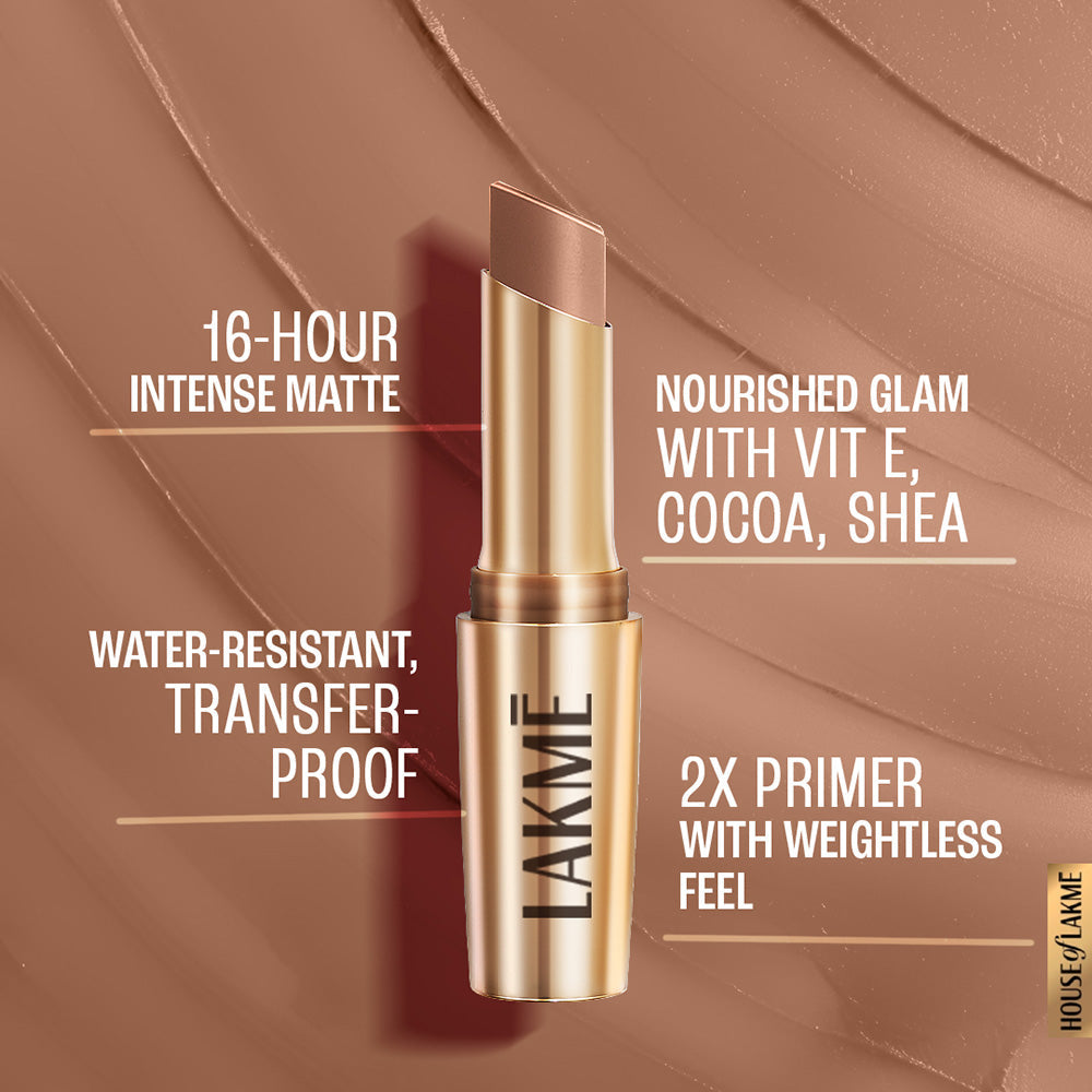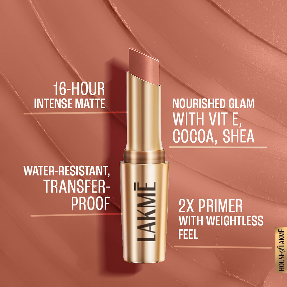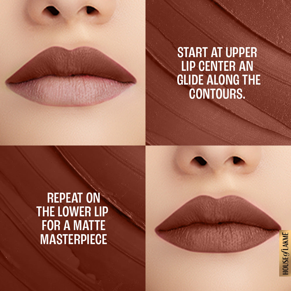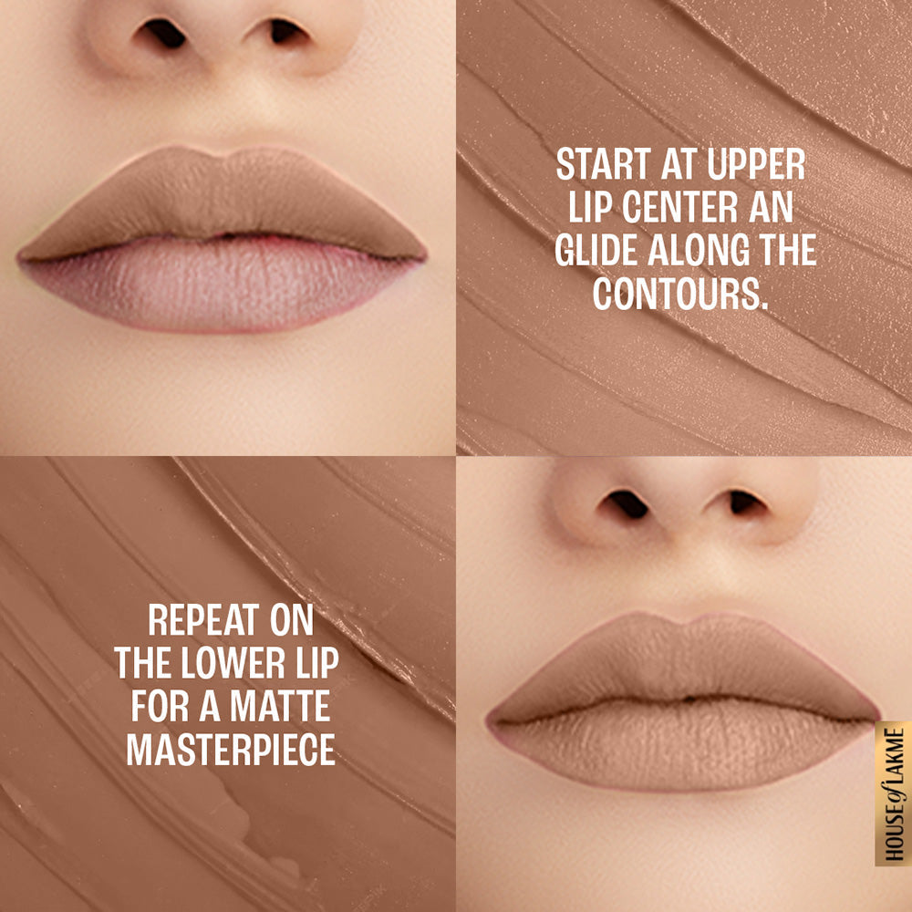 An unstoppable matte, for an unstoppable you! Introducing Lakmé 9to5 Primer+Matte Lipstick, with 2x built-in primer that gives your lips a long-lasting, smooth matte finish. It glides onto your lips smoothly and feels extremely comfortable and lightweight. The built-in primer ensures that the color settles onto your lips evenly. With 14-hour long stay power, it is your perfect companion in conquering the day! Now say goodbye to touch-ups through the day, as this lipstick was made for the woman who doesn’t stop! Available in 20 intensely rich, matte shades, your search for the perfect color ends with Lakmé 9to5 Primer+Matte Lipstick. Choose from a wide range of nudes, pinks, reds, browns, and plums that deliver rich color without drying out your lips. It glides on smoothly for a flawless matte finish and a vibrant color payoff. Pair it with Lakmé 9to5 Primer+Matte Perfect Cover Foundation, Lakme 9TO5 Eye Color Quartet Eye Shadow and Lakmé Eyeconic Kajal to flaunt your fabulous looks round the clock! Look good and feel unstoppable as you put on your makeup. How to apply: Start applying the lipstick at the centre of your upper lip and follow the contours of the lips. Glide it across the bottom lip for a smooth finish.