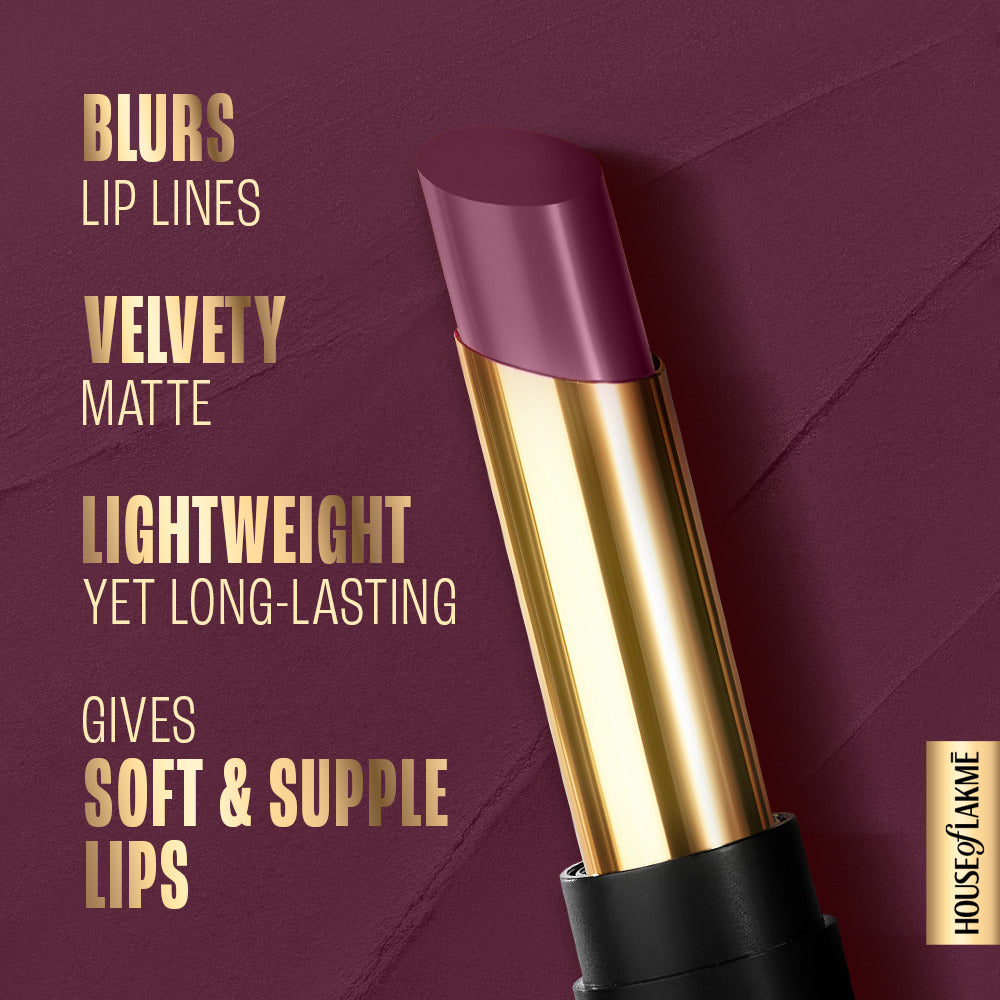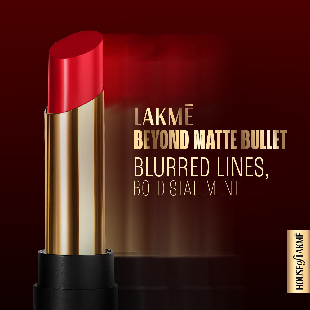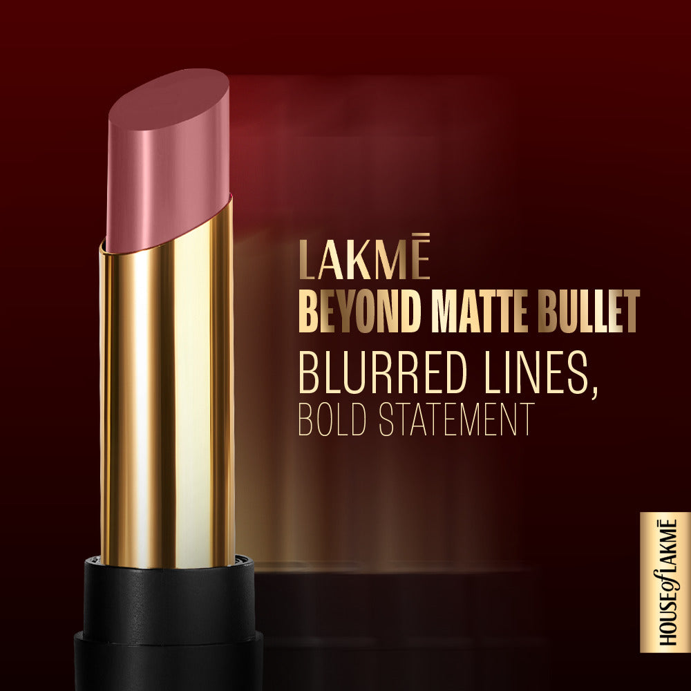 "Introducing the new Lakme Beyond Matte Bullet, a must-have lipstick that goes beyond being just a matte lip color! A ground-breaking formula with soft-focus technology, it gives a blurring effect to lips and visibly diminishes the look of lip lines. It is super lightweight with a velvety smooth texture that glides on effortlessly and offers high coverage so that you don’t shy away from a making a statement every time you step out! Our Beyond Matte Bullet is also infused with Argan Oil that moisturises and nourishes to give soft, supple, sensational lips. The result is intensely pigmented, soft-focus, hydrated, matte lips! 90%+ individuals agree that Beyond Matte Bullet gives an intense color payoff, with a smooth and even finish, and feels light and comfortable on lips. Start by defining your cupid's bow to get perfectly designed lips. Then, move to the outer edges and get the look you desire in one stroke. Available in 12 stunning colors designed to suit your every mood, this lipstick will take you from day to night and beyond. So what are you waiting for? Fall head over heels in love with our Beyond Matte Bullet because it gives better blend, better blur, and feels truly beyond! "