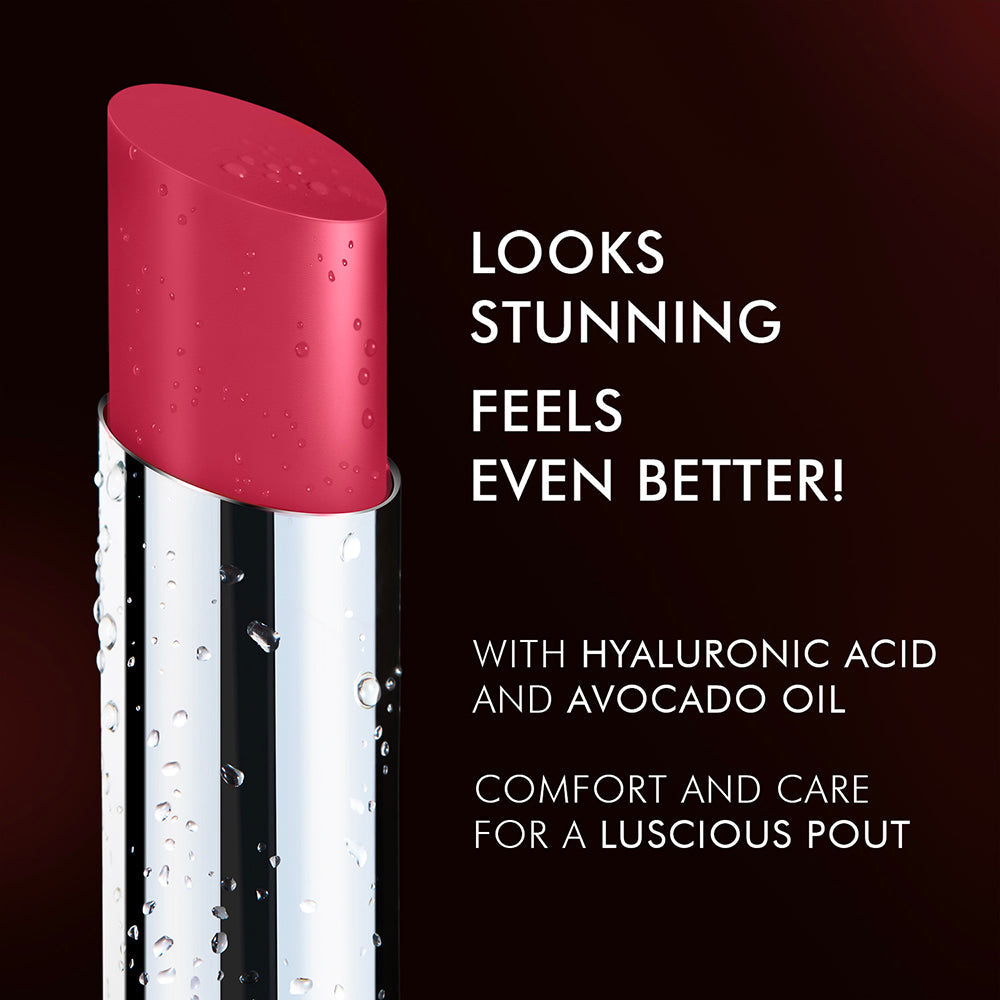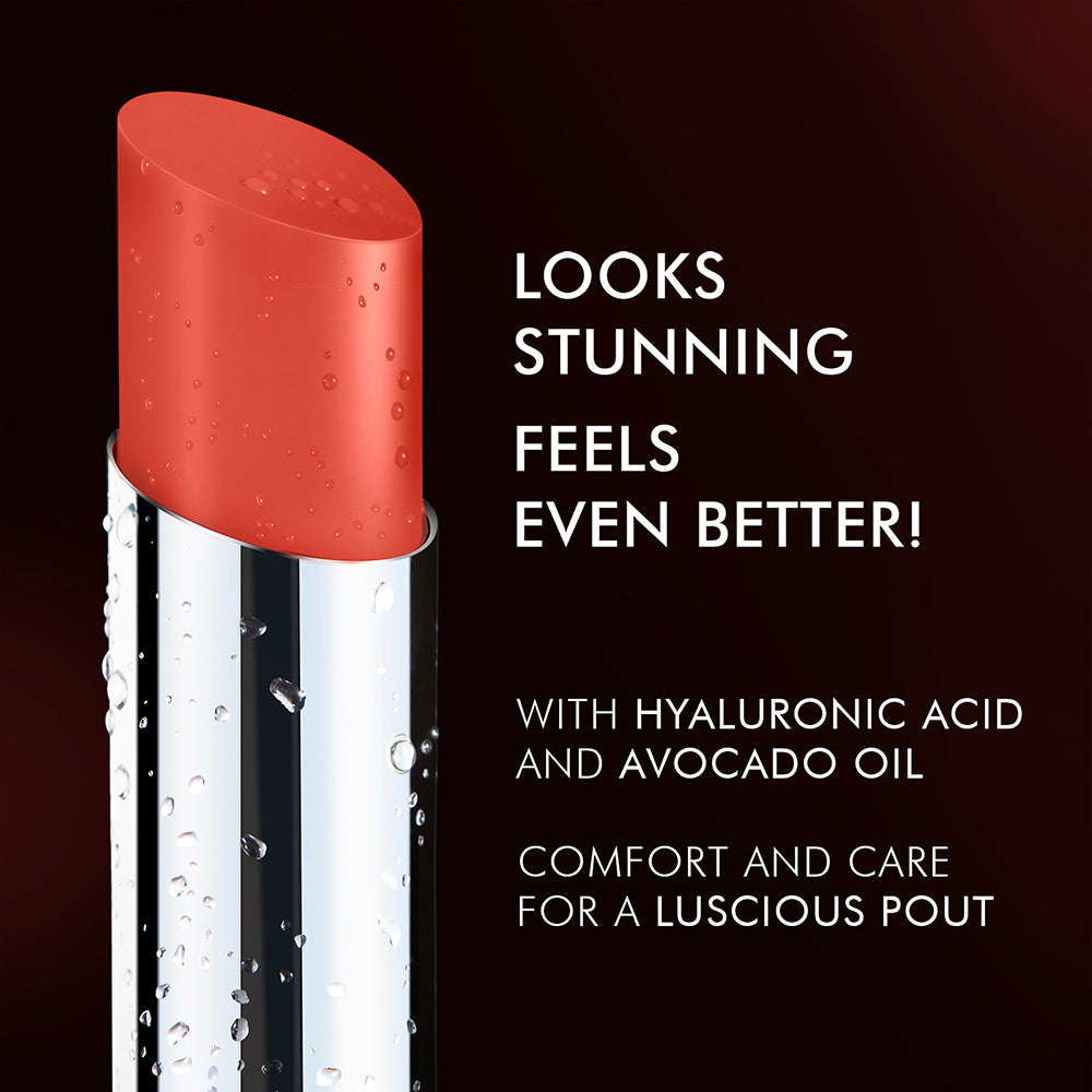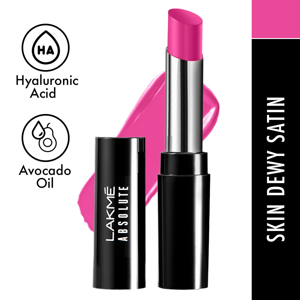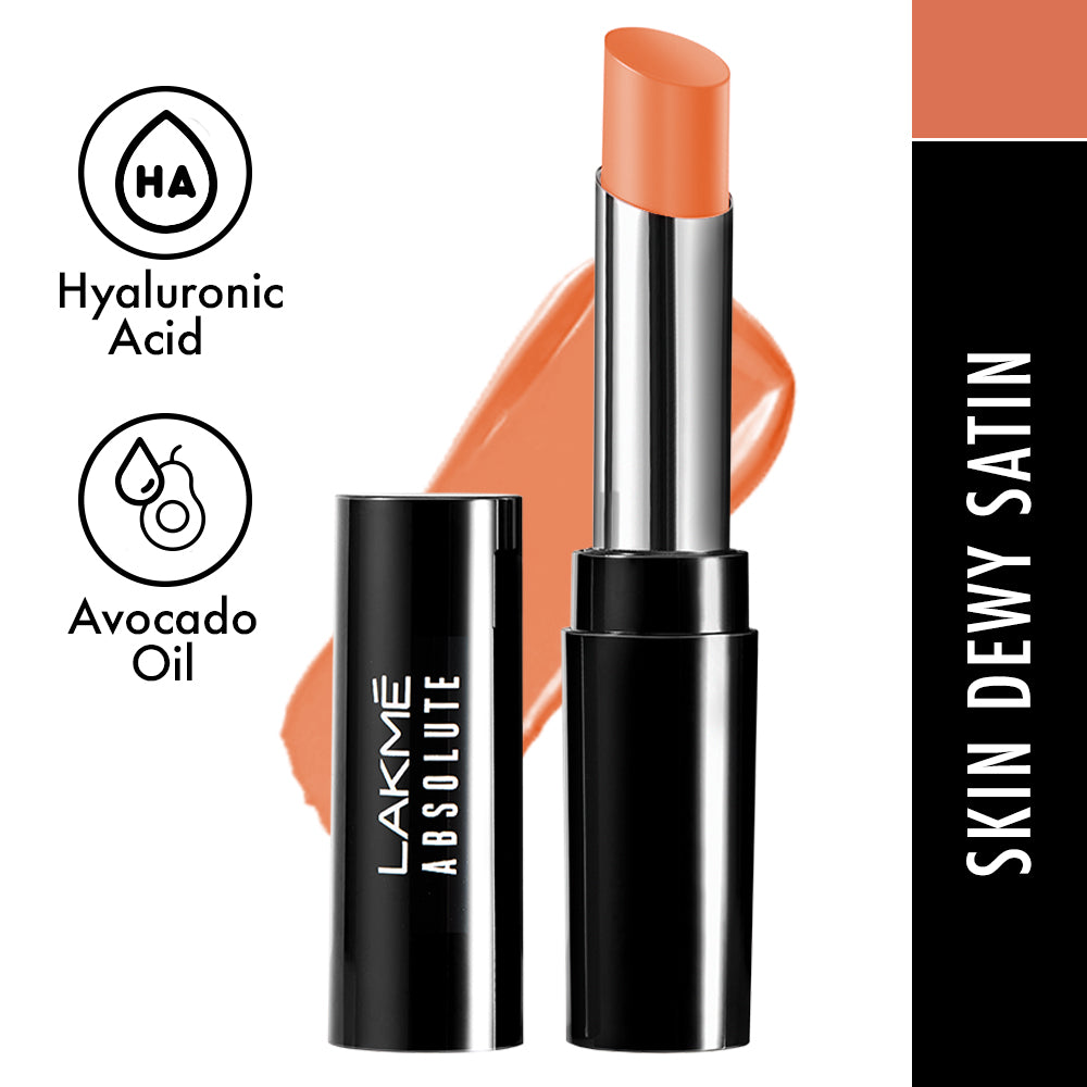 "Introducing Lakmé Absolute Skin Dew Satin Lipstick, a luxurious lipstick that has the perfect combination of high coverage, vibrant colour, and moisturising benefits to create a high shine, high glam look. This lipstick features a lush satin finish that delivers a velvety-smooth texture to the lips, creating a sophisticated look that lasts for hours. The intense pigmentation of the lipstick offers high coverage and rich colour in just one stroke, making it the perfect choice for those who want a bold and vibrant look. The hydrating and moisturizing benefits of the Lakmé Absolute Skin Dew Satin Lipstick make it an excellent choice for those with drier lips. Infused with Avocado Oil and Hyaluronic Acid, this lipstick hydrates and nourishes your lips, leaving them feeling soft and supple. In addition to its moisturising benefits, this lipstick also creates a dewy look that adds a youthful and fresh appearance to your makeup. The serum-infused satin soft texture of the lipstick glides smoothly over the lips, creating a seamless, flawless look that is perfect for any occasion. It is the go-to lipstick for any makeup lover! With its beautiful satin finish, high coverage, rich dewy color and hydrating properties, the Lakmé Absolute Skin Dew Satin Lipstick is the perfect showstopping essential that’ll leave your lips feeling nourished and ensure you look stunning!"