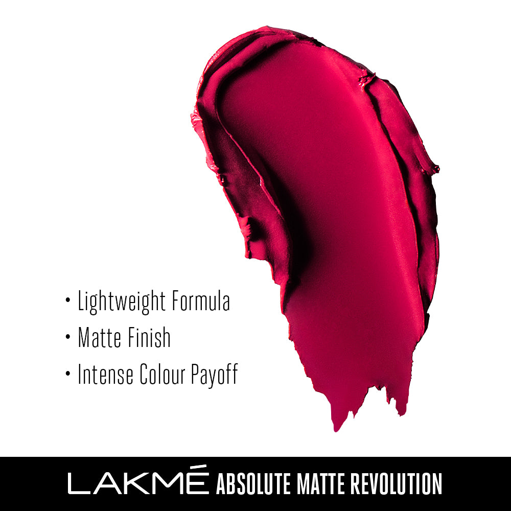So feather-light, it doesn’t feel like makeup! Introducing Lakmé Matte Revolution Lipsticks - a collection of gorgeous matte lipsticks that are designed to be long-wear and infused with goodness of raspberry seed oil known for its deeply nourishing and soothing properties. The creamy light formula glides on without dragging. Simply run the bullet over your lips once for instant glam. The buttery formula softly hugs lips and sets in a comfortable finish. Be assured of an intense colour payoff with just one application! Don’t worry about a drying effect as it is enriched with nourishing properties that keep lips soft and tender. This range of lipsticks lasts throughout the day without weighing down your pout. It comes in a sleek bullet form that you can pop into your party clutch while heading out. From plums to pinks and nudes to corals, the range is available in 20 delicious shades. Make a statement with mattified, pretty lips!