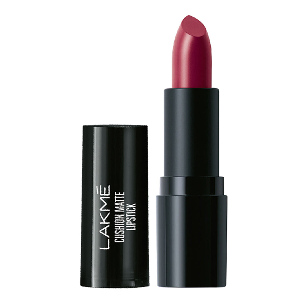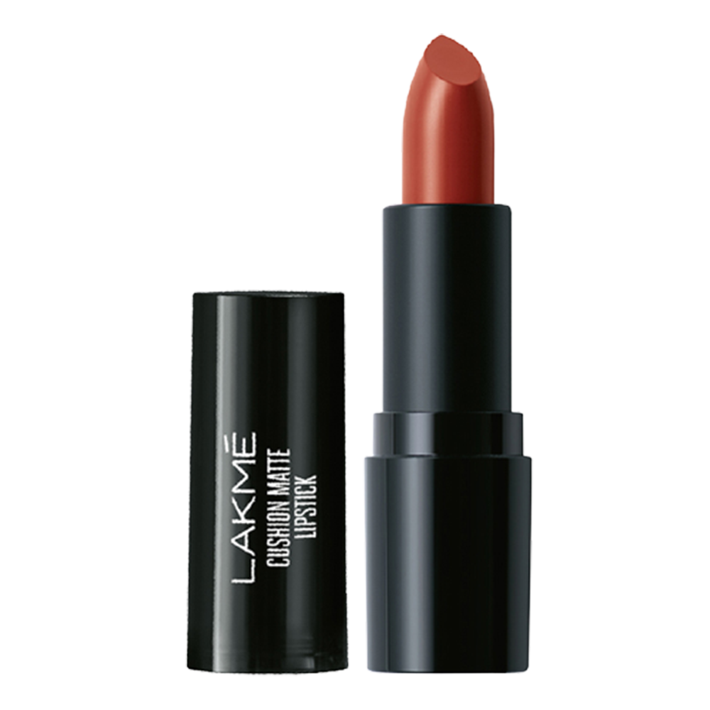 Lakmé Cushion Matte Lipstick. An exclusive new matte lipstick with a revolutionary soft matte formula that makes matte lips feel soft and comfortable. The soft matte formula is enriched with rose oil extracts from France which give your matte lips a moisturized, comfortable feel. It’s non-drying formula doesn’t dry your lips and leaves them feeling soft and looking intensely matte. Lakmé Cushion Matte is a water resistant soft matte lipstick that gives you a long lasting intense matte color and cushion soft lips all day. Choose from 20 vibrant matte shades and wear cushiony soft lips for a variety of occasions. To complete your soft matte look, pair your cushion matte lips with Lakmé Eyeconic Lash Curling Mascara, and Lakmé Impact Eyeliner.