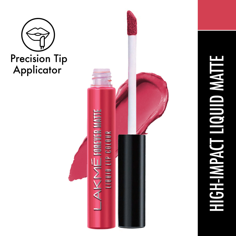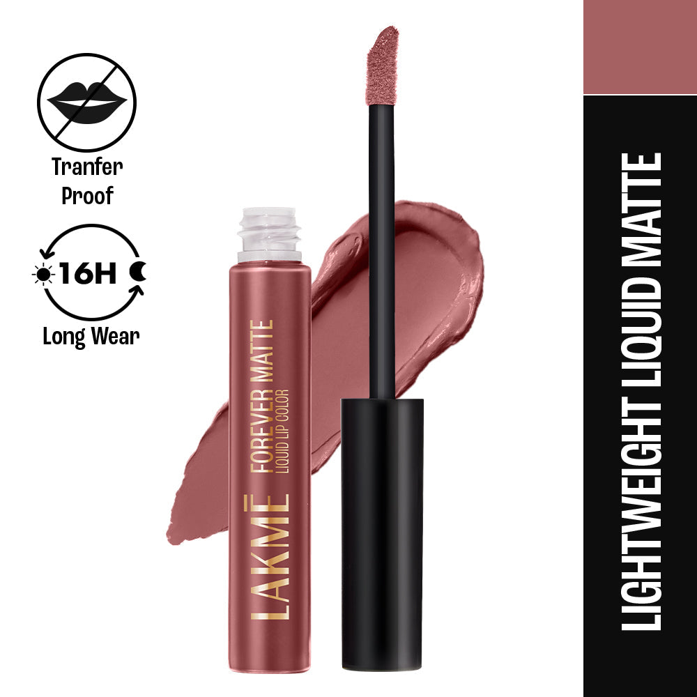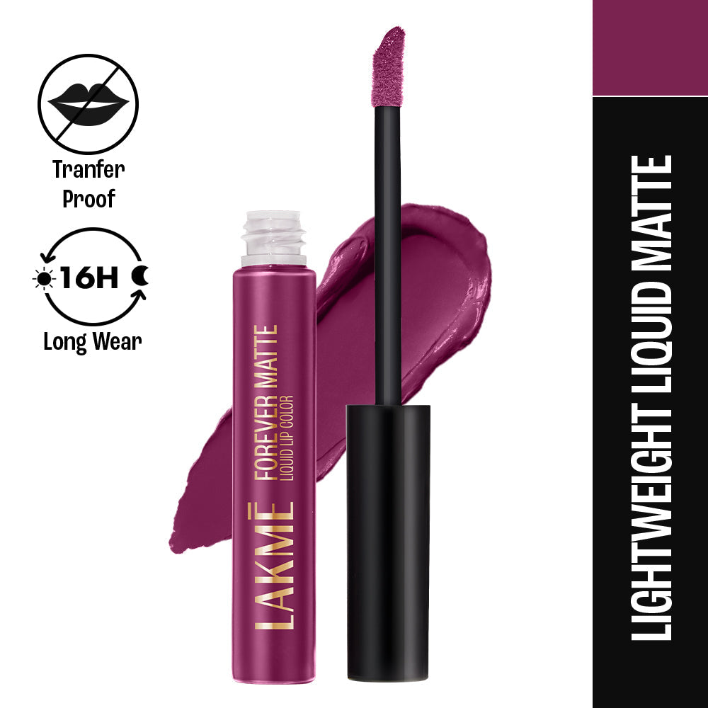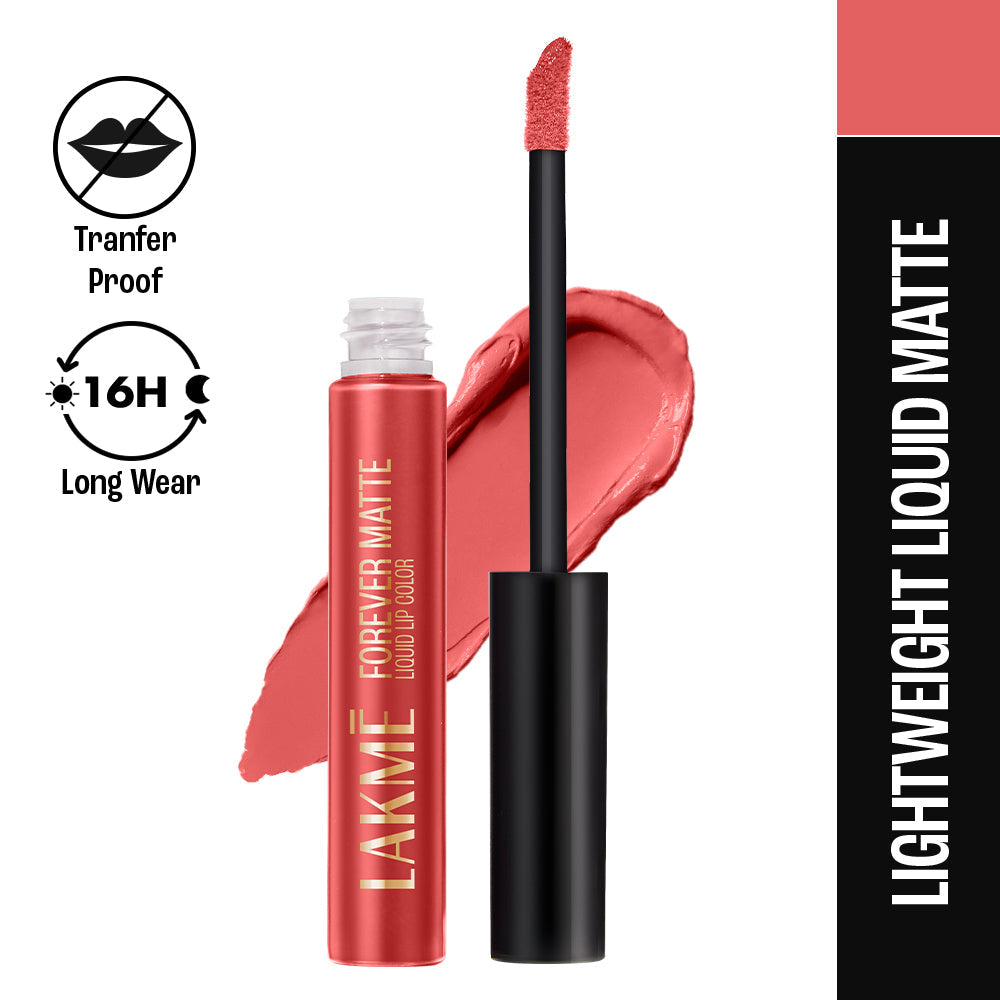 "Introducing the New Lakme Forever Matte Lip Color Range - Available in 20 Exciting shades! Designed by experts|| this lip color has an intense matte payoff that lasts long and looks freshly applied for up to 16 hrs. These deeply pigmented shades provide your lips with long lasting colors that just don’t budge! Whilst the color payoff is intense the texture is lightweight and very comfortable on the lips! Easy to apply|| it glides on effortlessly and stays forever fresh! Try the liquid mattes in 20 vibrant shades and get bold lips that look freshly applied through the day! It comes with a specially designed wand to make the application precise and effortless and give you the best payoff possible!