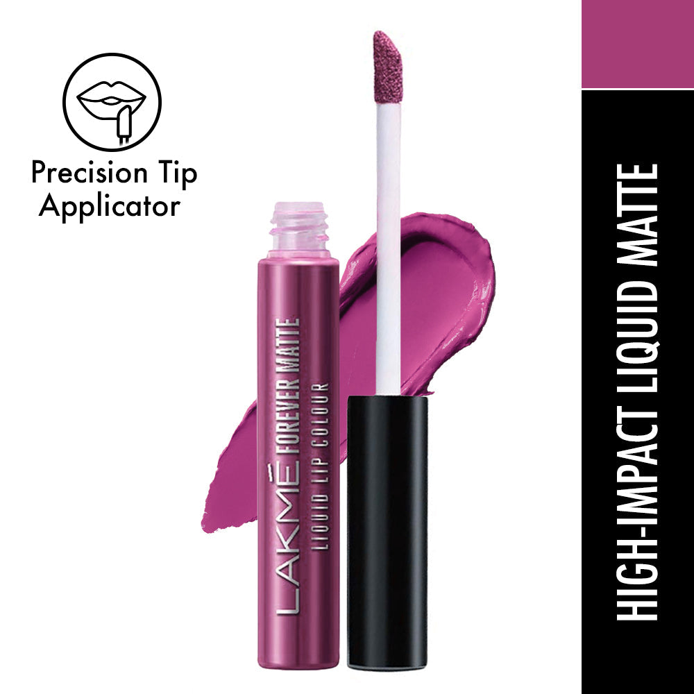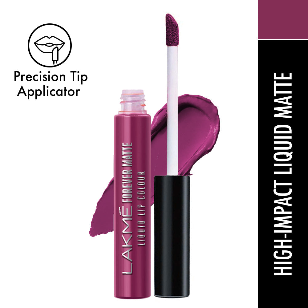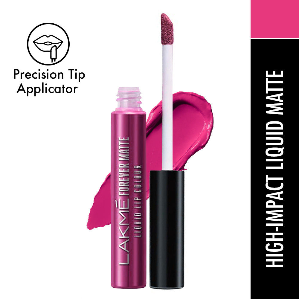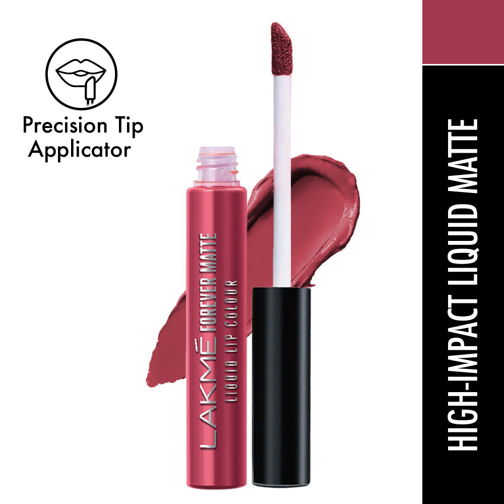 "Introducing the New Lakme Forever Matte Lip Color Range - Available in 20 Exciting shades! Designed by experts|| this lip color has an intense matte payoff that lasts long and looks freshly applied for up to 16 hrs. These deeply pigmented shades provide your lips with long lasting colors that just don’t budge! Whilst the color payoff is intense the texture is lightweight and very comfortable on the lips! Easy to apply|| it glides on effortlessly and stays forever fresh! Try the liquid mattes in 20 vibrant shades and get bold lips that look freshly applied through the day! It comes with a specially designed wand to make the application precise and effortless and give you the best payoff possible!