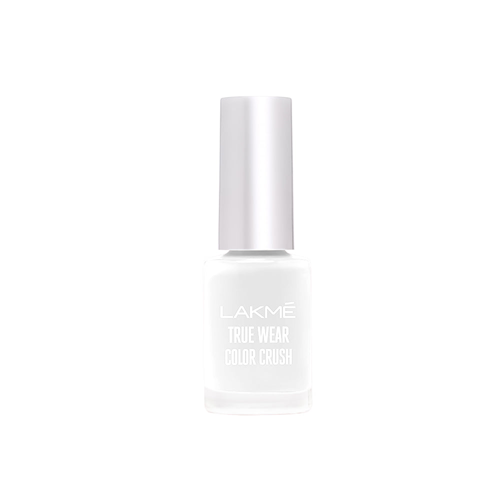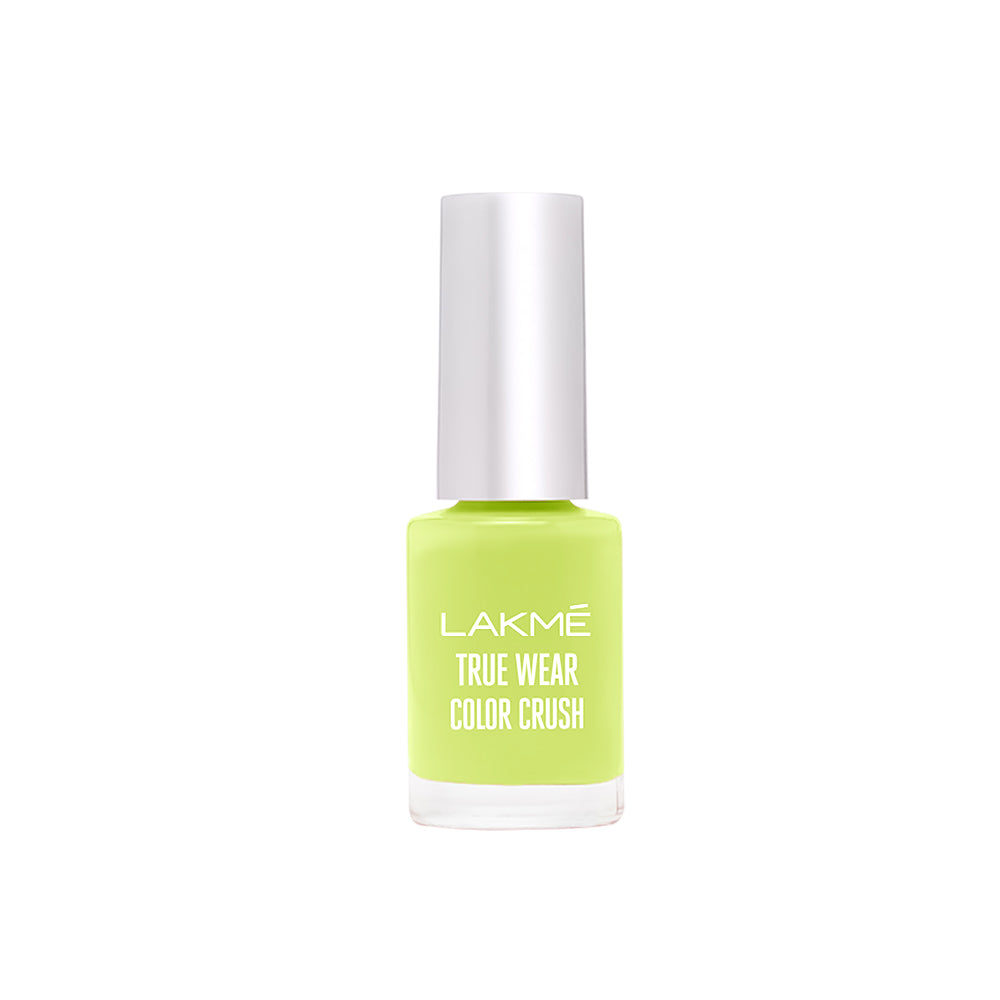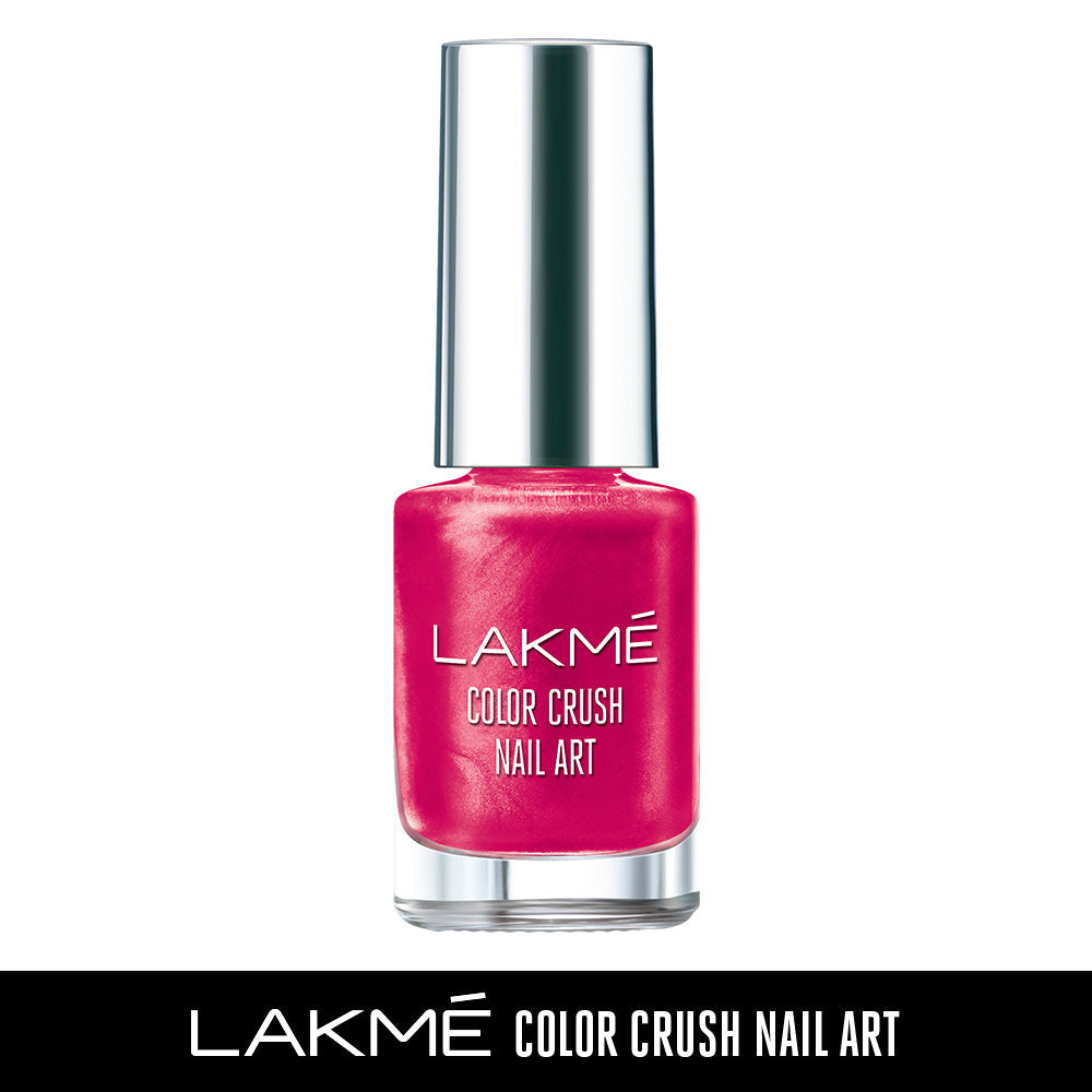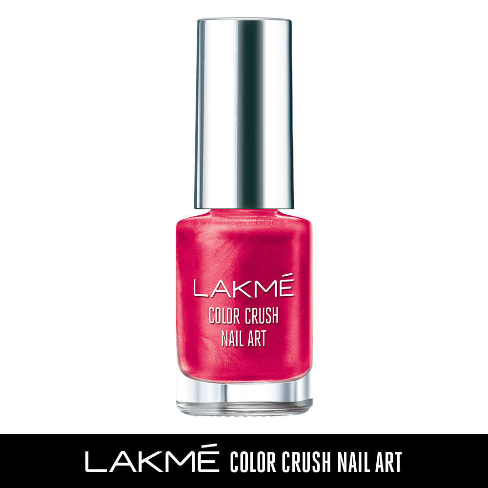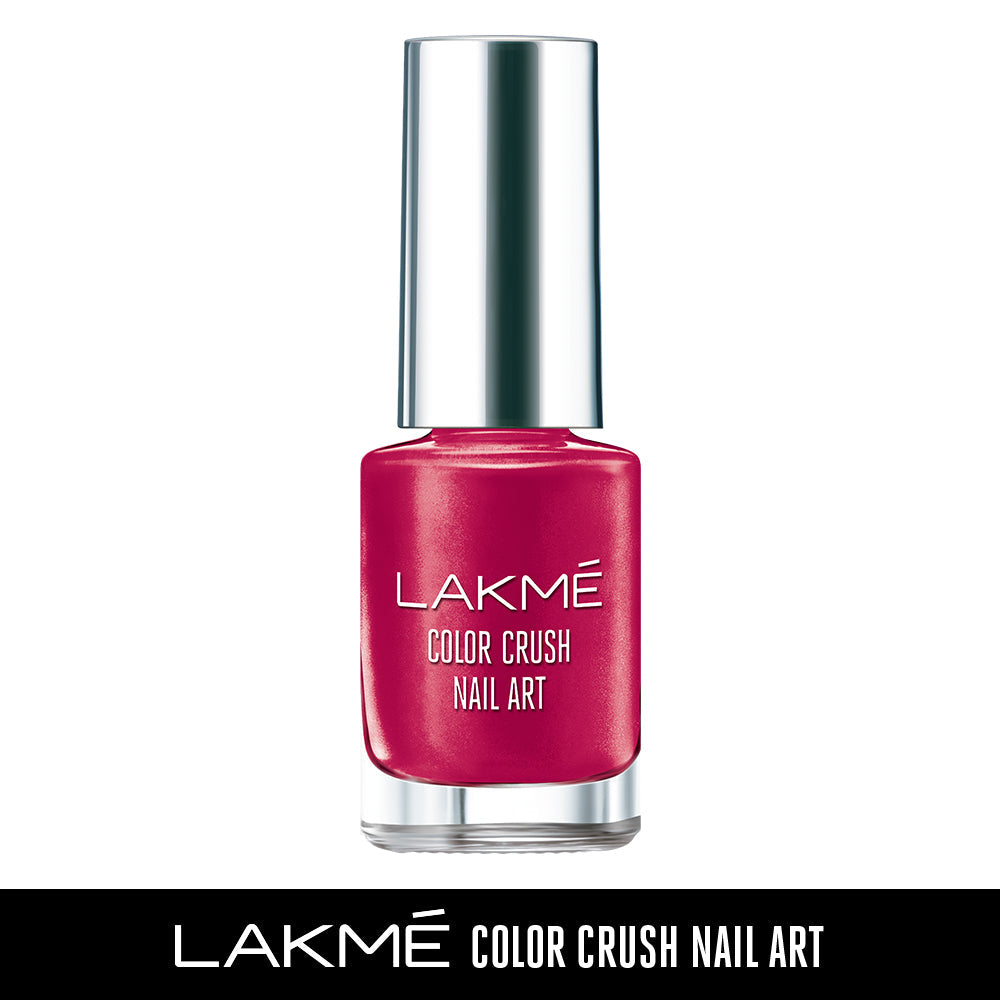"Looking to spice up your nails at home? In that case, Lakmé True Wear Color Crush Nail Color is here to stay and slay! A flawless, salon-like finish in just one coat – get ready for your nails to look glossy and feel as smooth and fresh as ever! Create trendy nail art for all occasions with a resin-based formula that locks in color and lasts longer than usual. That’s not all- our extensive range of 50 vibrant shades cater to all looks, moods, and occasions. Work or play, you can now “nail” every look effortlessly. Most importantly, our nail paint formula is chip resistant. So, even with a quick, at home nail fix, you’ll get the benefits of a professional nail job. All you must do is, start with absolutely clean nails. Place a dot of the nail paint above the cuticle and glide the formula from the centre to the rest of the nail. Continue to sweep from the bottom to the tip of your nails. Use a q-tip and remover to clean edges and apply top-coat to lock color. That’s all you need to do to ace every nail trend with Lakmé True Wear Color Crush Nail Color."