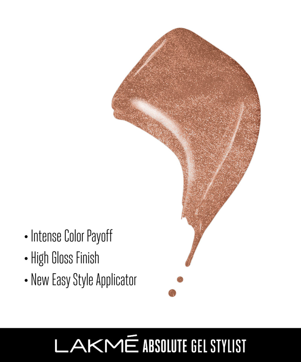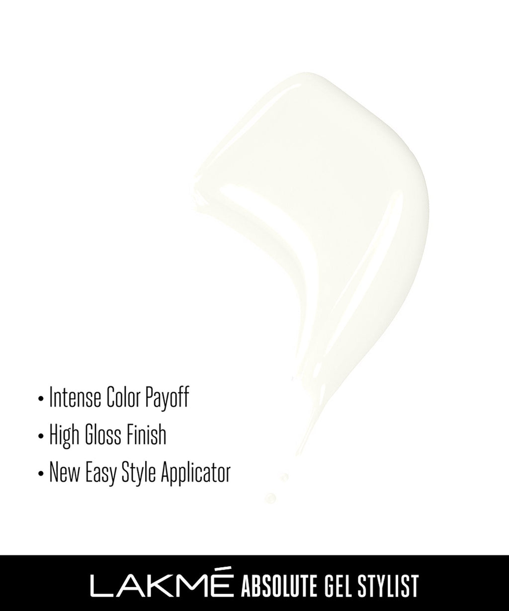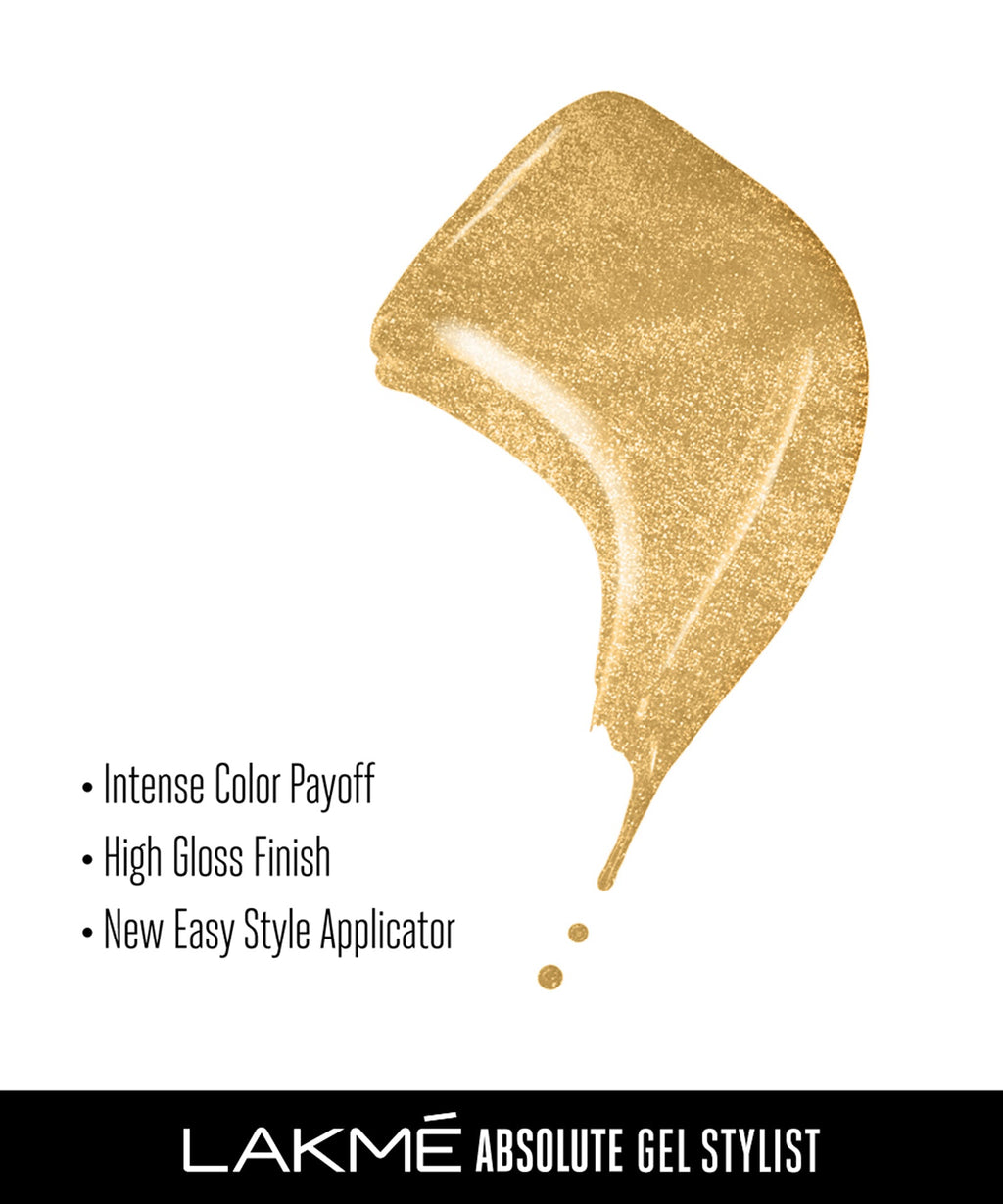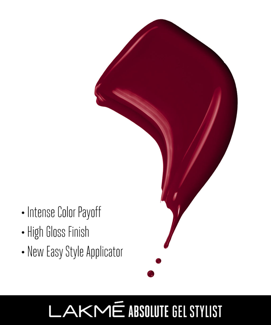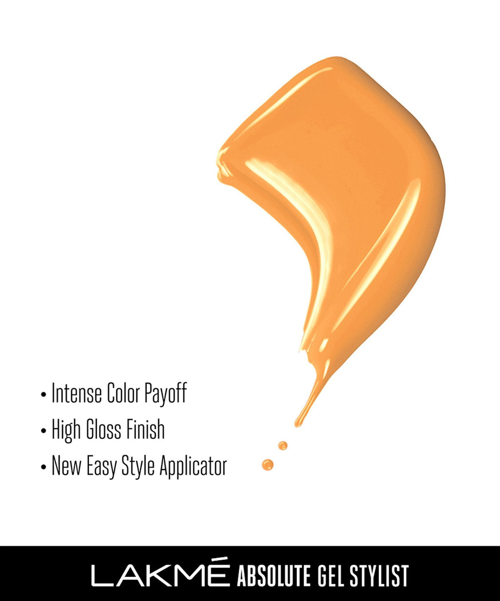 Lakmé Absolute Gel Stylist Presenting the Lakmé Absolute Gel Stylist Nail Color range - an exclusive collection of 15 glossy shades, now in an all-new bottle. It gives you long lasting gel-like nails and an extremely high gloss finish with every application. Choose from a wide range inclusive of nudes, reds, pinks, glitter and metallic shades that you can wear every day, or during festivities. Its new design includes the innovative applicator that glides easily onto your nails to a deliver glossy finish in one quick swipe. Get lasting rich color payoff with an intense glossy finish in 15 shades. Complete your gel nails look with the Top Coat.