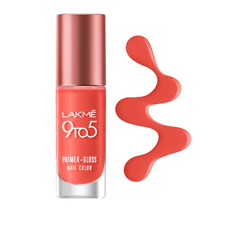 Get everyday perfect nails with Lakme 9to5 Primer + Gloss Nail Colour. Presenting the all new Lakme 9to5 Primer + Gloss Nail Colour range with colours that dry quickly|| giving your nails a long lasting intense glossy shine. Now coat your nails with vibrant colour and an intense glossy shine that stays through your busy work days. Available in a wide range of 29 bright colours and 1 Top Coat that gives an added glossy finish. Colour for everyday use|| the shades are simply a must-have! Priced at only Rs.180|| the Lakme 9to5 Primer + Gloss nail colour range will give you an everyday-perfect glossy look to your nails. To get perfect glossy nails|| start by applying one coat of your desired nail colour. Wait between coats to get a smooth|| dry layer. Apply the Top Coat to coat your nails with a glossy|| chip-proof texture and give any nail colour a smooth|| long-lasting glossy finish. You’re now ready to go with everyday-perfect glossy nails.