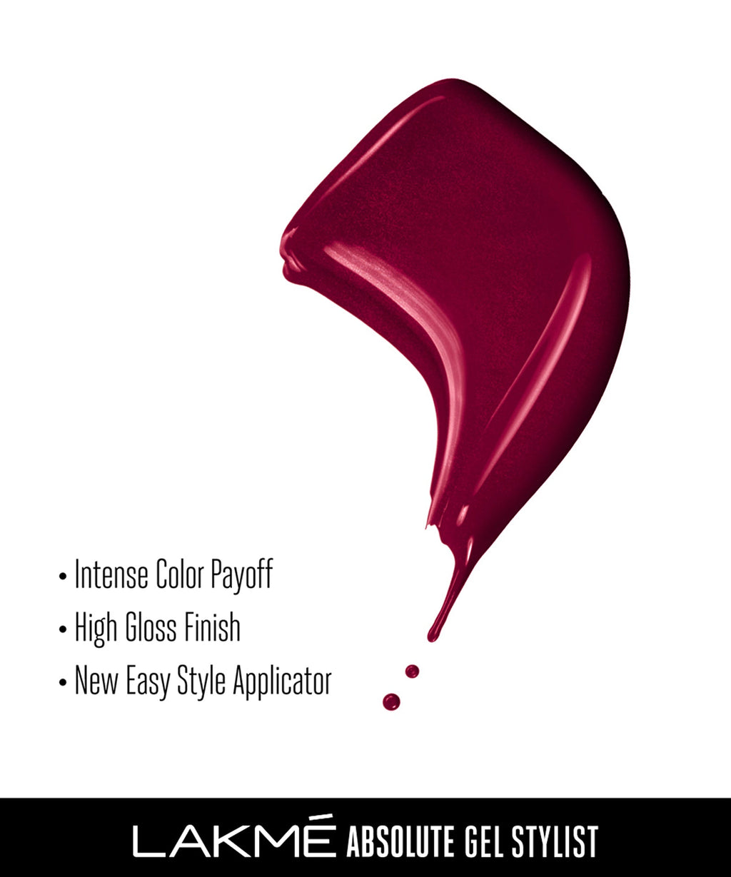 Nail every look, with gel-like, stylish nails with high gloss finish. Get salon-like nails at home, with the Lakmé Absolute Gel Stylist Nail Color range. With this range of dazzling, trending shades, you’d definitely be spoilt for choice! From nudes to pinks for everyday looks, reds and blues for parties and glitter to metallic for festivities, there’s a shade for every occasion, outfit, and mood! With its gel-like texture and high gloss finish, this nail colour is all you need to get glammed-up nails. It comes with an innovative applicator that glides easily on the nails and delivers a glossy finish in just one single swipe with our precision applicator. All you have to do is pick a shade of your choice, use the applicator to apply the first coat in one straight line - starting from the base to the tip of your nails. Let it dry completely, before applying the final coat of nail paint. And voila, you're all set to flaunt a set of gorgeous, glossy nails! With the Lakmé Absolute Gel Stylist Nail Color range, the power to get long-lasting, vibrant, and gel-like glossy nails can be in your hands - quite literally. A perfect shine everyday, everywhere in every wear!