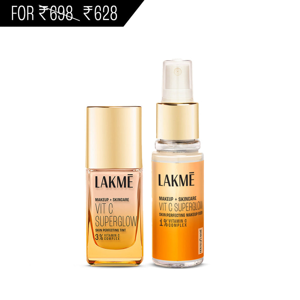 Lakmē Makeup+Skincare VitC Superglow Skin Perfecting Tint: "New Lakme Vit C Superglow Skin Perfecting Tint isn't just about makeup, it’s a skincare powerhouse. Supercharged with 3% active Vitamin C, it transforms your skin from within to give you an instant, radiant look and hydrated, smoother, brighter skin overtime. Unlock your way to radiant, nourished skin with this blend of makeup and skincare that's as light as air. The super luxe formula melts into your skin like a dream, delivering a natural finish with a radiant matte glow. With 90% skincare ingredients like brightening Vitamin C, antioxidant Vitamin E, hydrating essence, and moisturizing emollients it improves your skin with repeated, regular usage. It also has UV+blue light protectors that safefguard against environmental stressors.  Powered by skincare science, Lakme Superglow Skin Perfecting Tint has Soft Focus Technology that blurs imperfections. Micro Radiance Boosters infuse your skin with an enhanced glow and Active Hydrators lock in moisture. Available in 12 radiant shades that suit 100% of Indian skin tones, this is the tint you need for your best skin. Don't believe us? Well, 96% of users noticed their skin looked brighter and smoother after use. It’s time to get your glow on with new Lakmē Vitamin C Superglow Skin Perfecting Tint."